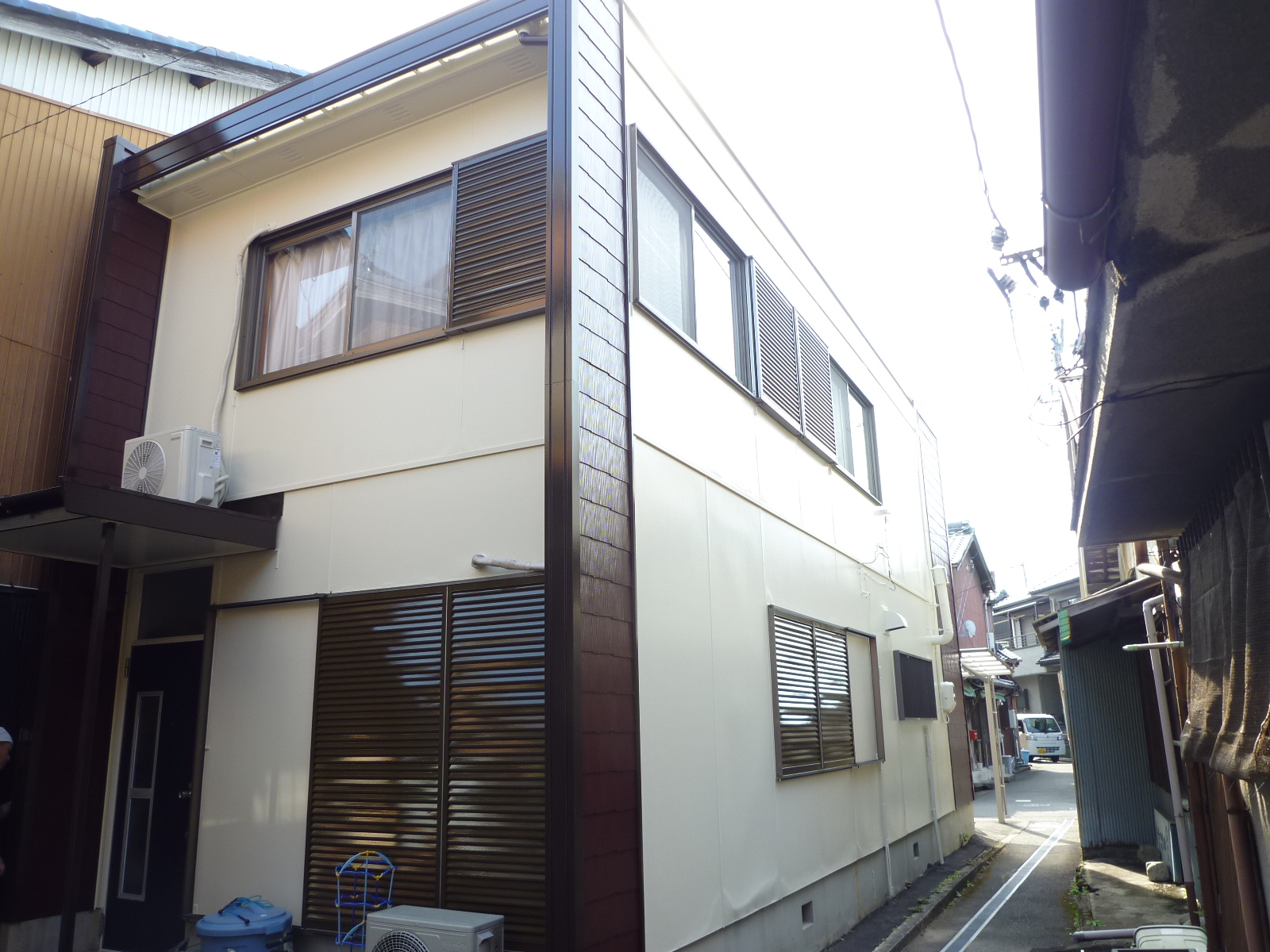 家の近所の方からの、依頼です。 外装モルタル面と、トタン面 木部 他雨戸 雨樋です。 トタン面は、そんなに劣化してなく、塗りやすくて 他も問題なく順調にぬれました。
