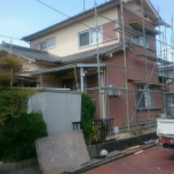 大工さんの紹介で、塗装工事を行いました。 裏2面が、結構狭くて大変でした。 足場も自社です。裏2面狭かったのですが 塗装のほうは、順調に進み綺麗になりました。