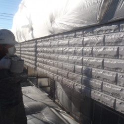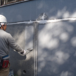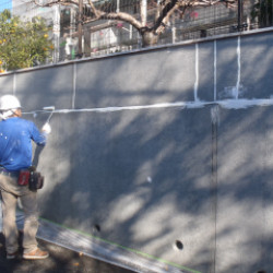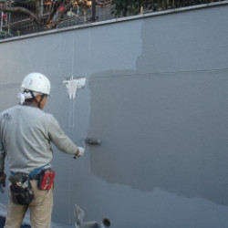 元請様の自宅の改修吹付塗装工事を行いました。 他 ベランダ屋上の防水工事(通気緩衝工法) 壁のシール工事 擁壁のシリコン塗装 壁の吹付は、アクリルシリコン樹脂 御影石調仕上げです。 きれいになりました。