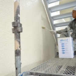 前回塗装工事を、やりました所の、実家の塗装工事やらせてもらいました。 外壁と、防水工事 外壁と、防水面、年数が立っているので、かなりのいたみ具合でしたが。 仕上がったら、かなりきれいになりました。