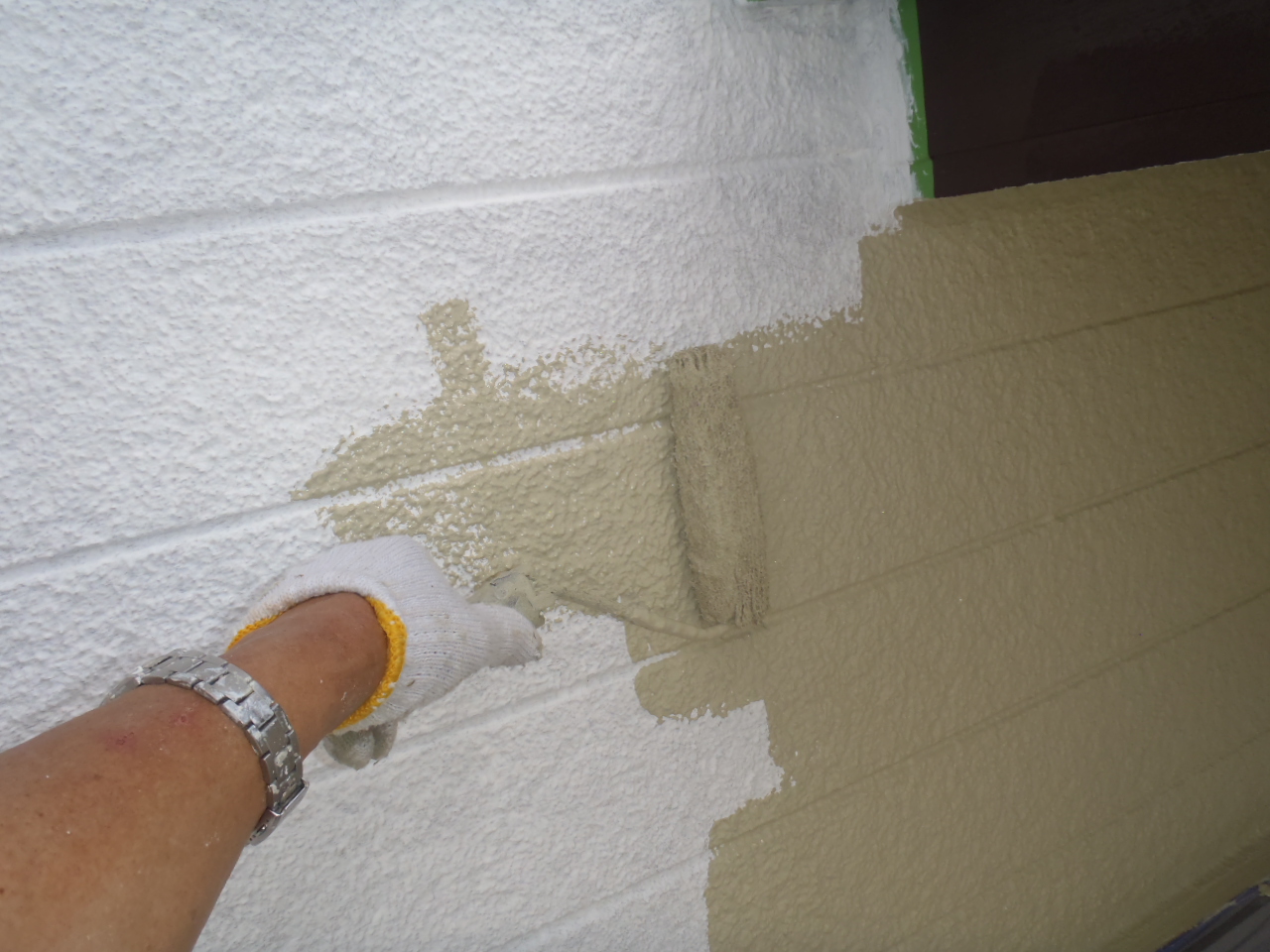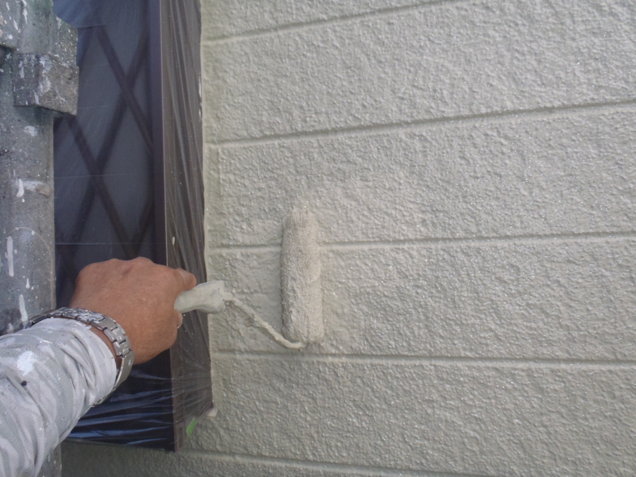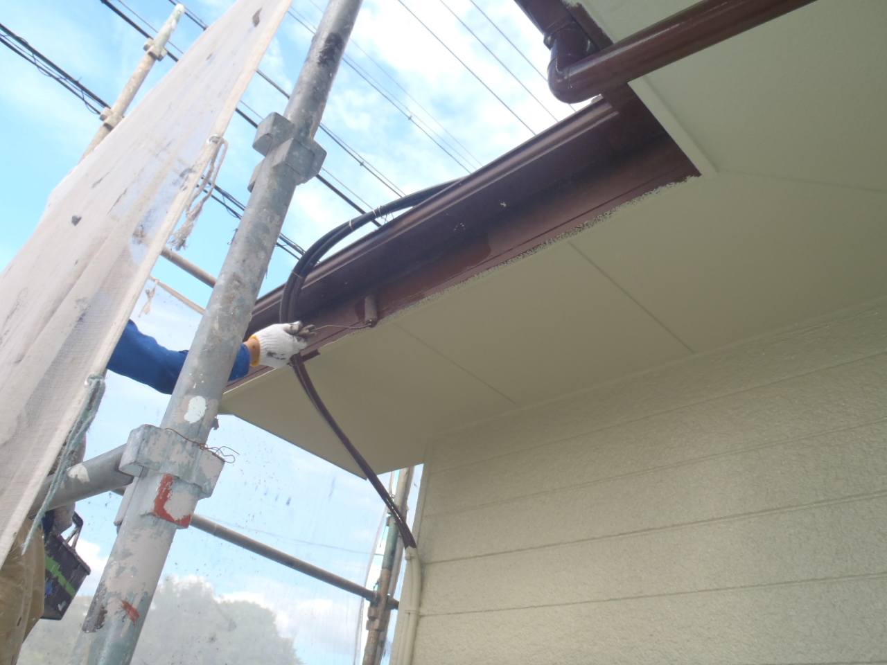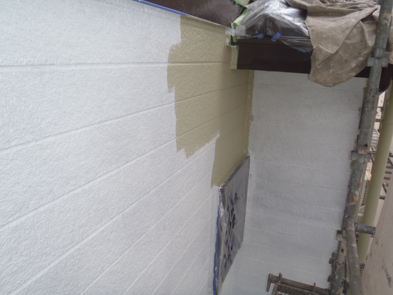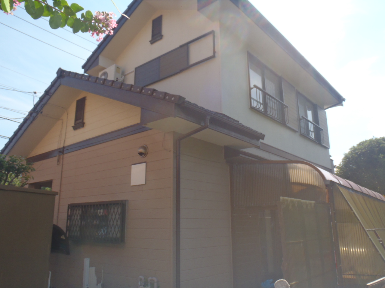 少し手が空いたので、自宅の外装工事をしました。 8月でしたので大変暑い日で、特に今年は沸騰時代がやって 来るといわれるくらいでへとへとでした。足場も自社で組みました。 外壁は、高圧洗浄後 下塗 水性シリコン2回 3回塗り 軒天 セラミタウン 破風 雨樋 雨戸 他 ウレタン樹脂で仕上げました。 ジョイントは、悪い所シール打替え 他 自宅となると外壁色まよいますね。なんとか決まり塗装しました。